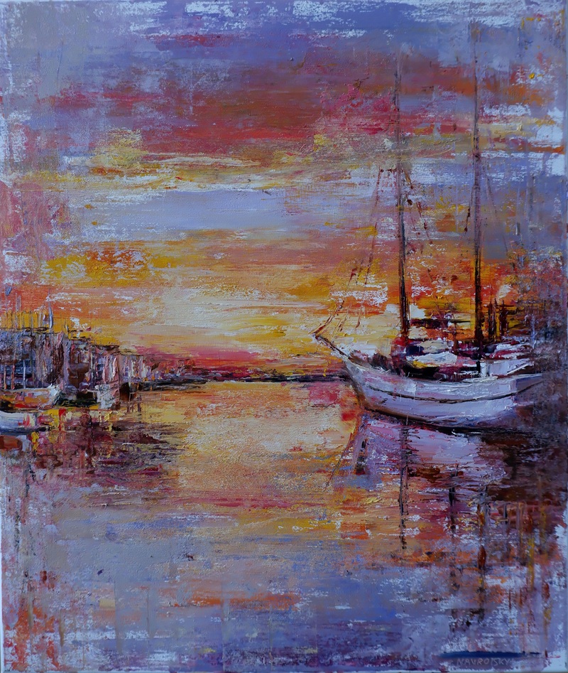 Názov: Olejomaľba “ Západ slnka nad morom“.